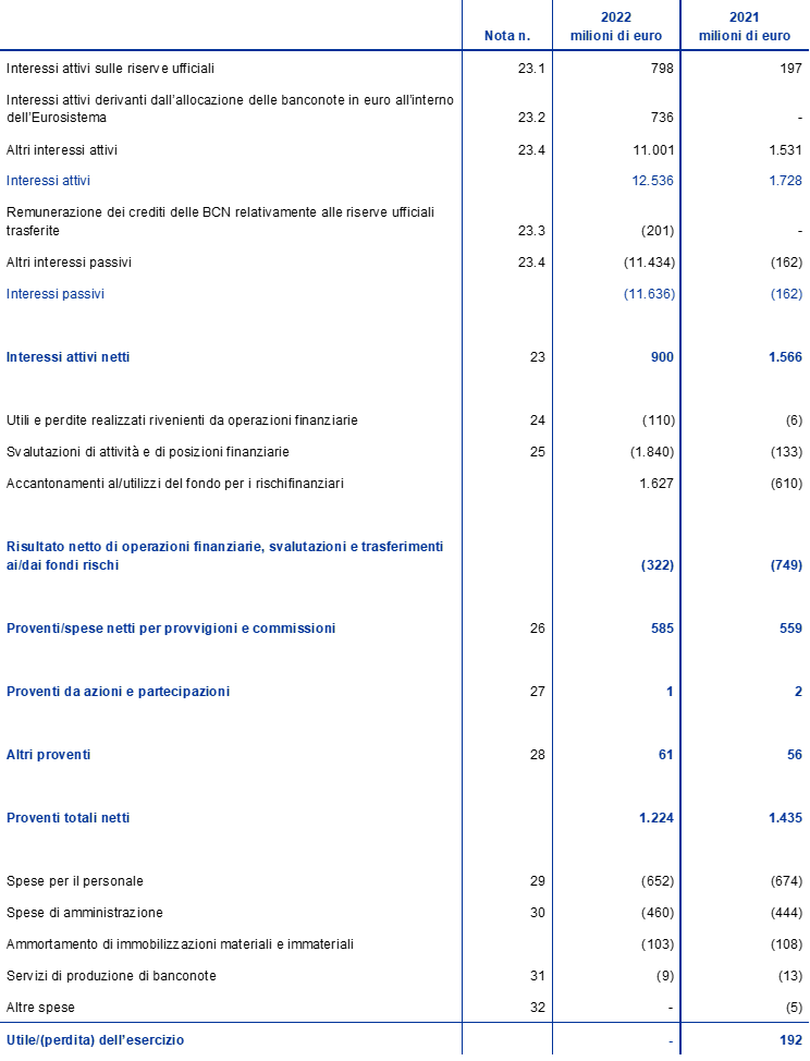 La presente nota non costituisce parte integrante del bilancio della BCE per l’esercizio 2022.