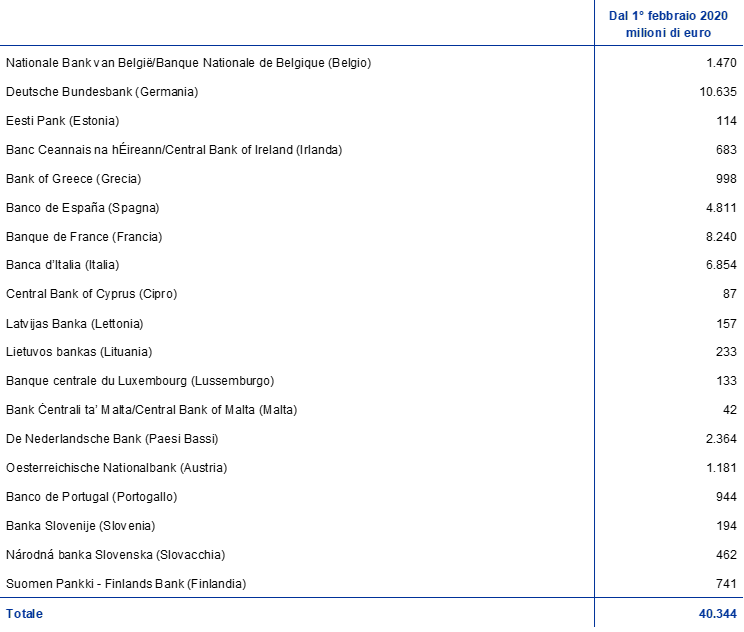 Cfr. il comunicato stampa del 30 gennaio 2020 sul capitale sottoscritto della BCE dopo l’uscita della Bank of England dal SEBC.