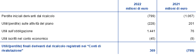 La voce “Conti di rivalutazione” dello stato patrimoniale comprende anche il ricalcolo relativo ai benefici successivi al rapporto di lavoro.