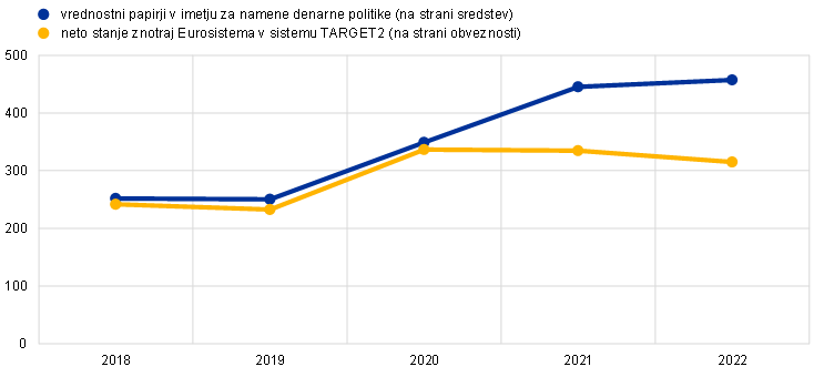 Neto saldo znotraj Eurosistema v sistemu TARGET2 in vrednostni papirji v imetju za namene denarne politike