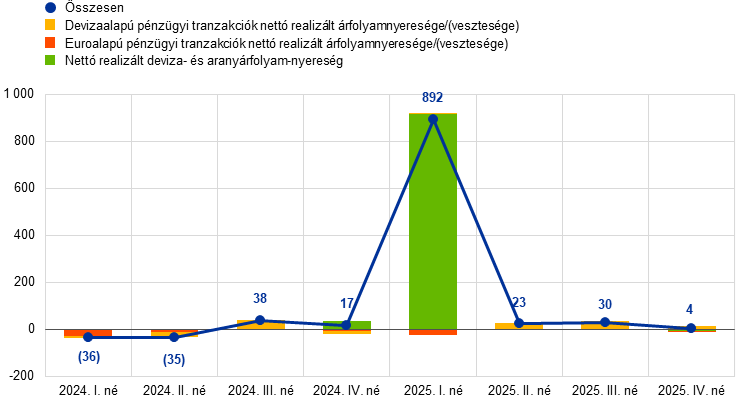 Az EKB aranyat, különleges lehívási jogokat, USA-dollárt, japán jent és kínai renminbit tartalmazó nemzetközi tartalékának euróban kifejezett összértéke 2025-ben 13,6 milliárd €-val 116,8 milliárd €-ra nőtt.
