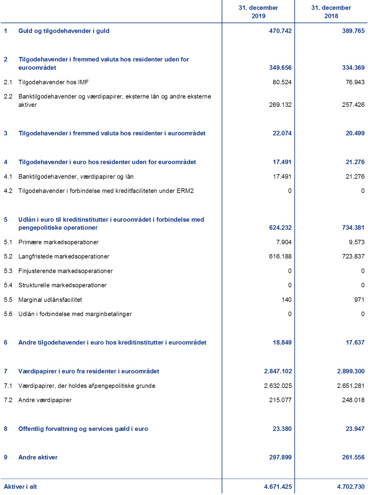 Eurosystemets konsoliderede balance pr. 31. december 2019