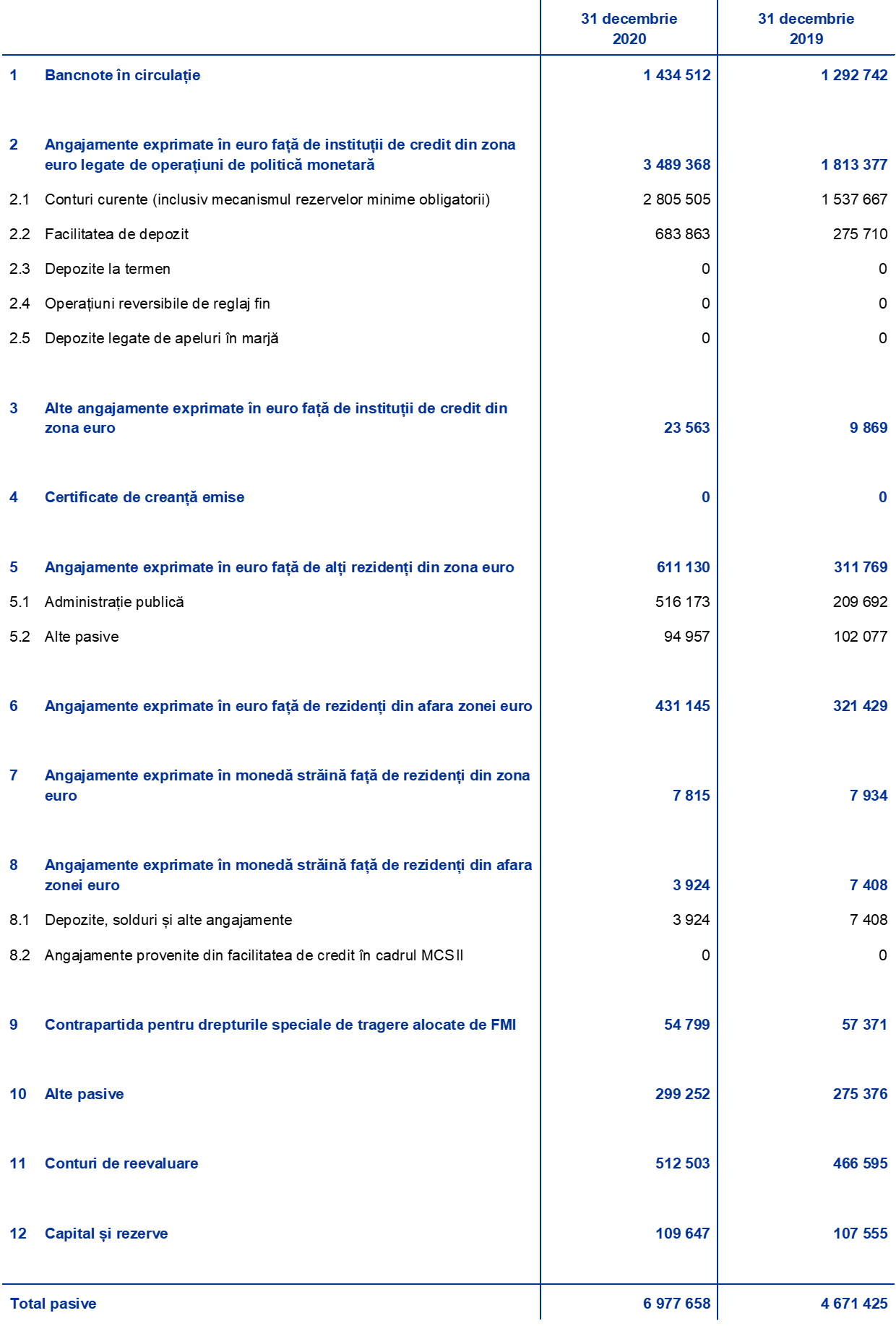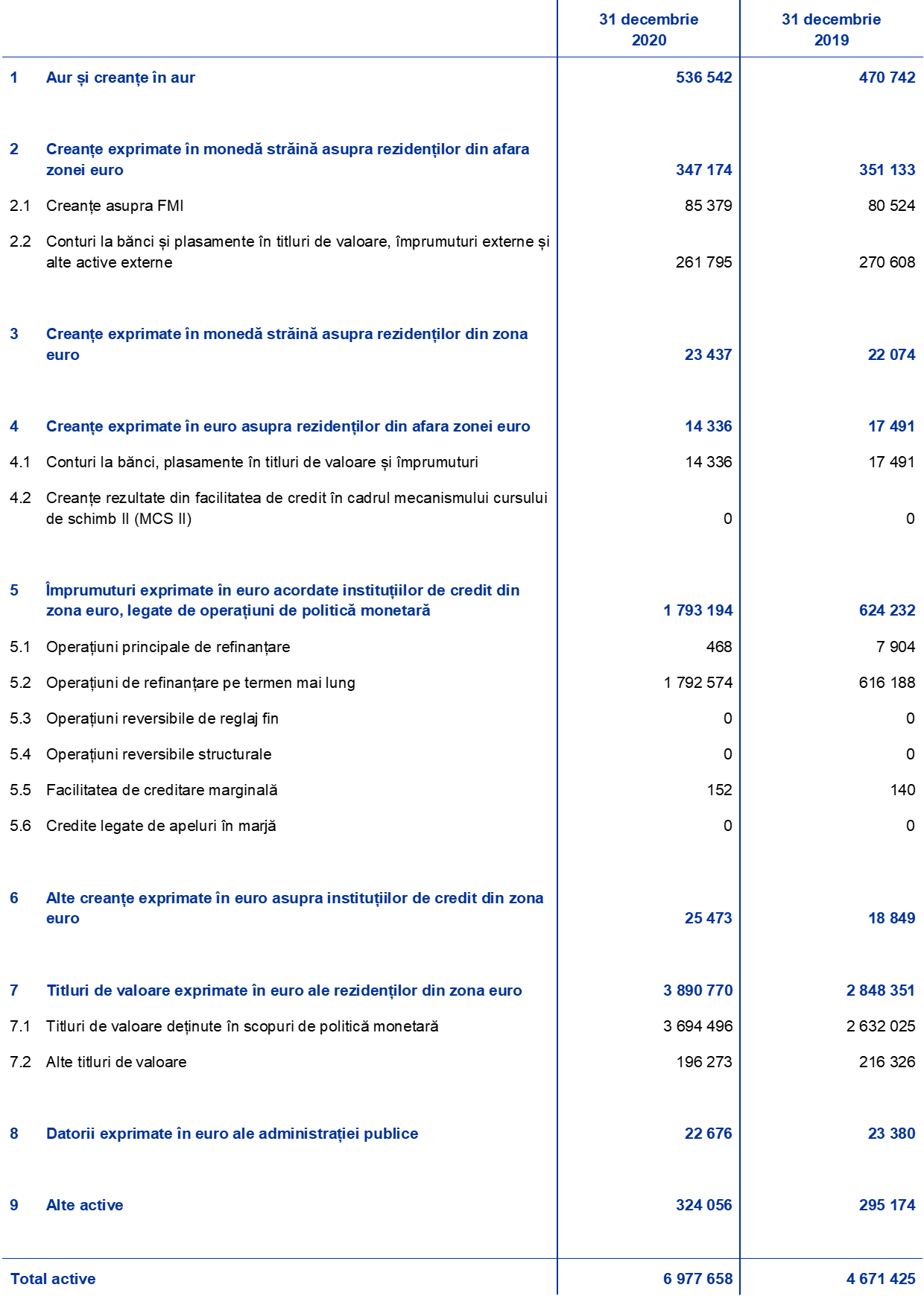 Bilanțul contabil consolidat al Eurosistemului la 31 decembrie 2020