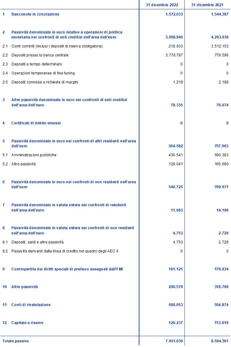 Stato patrimoniale consolidato dell’Eurosistema al 31 dicembre 2022