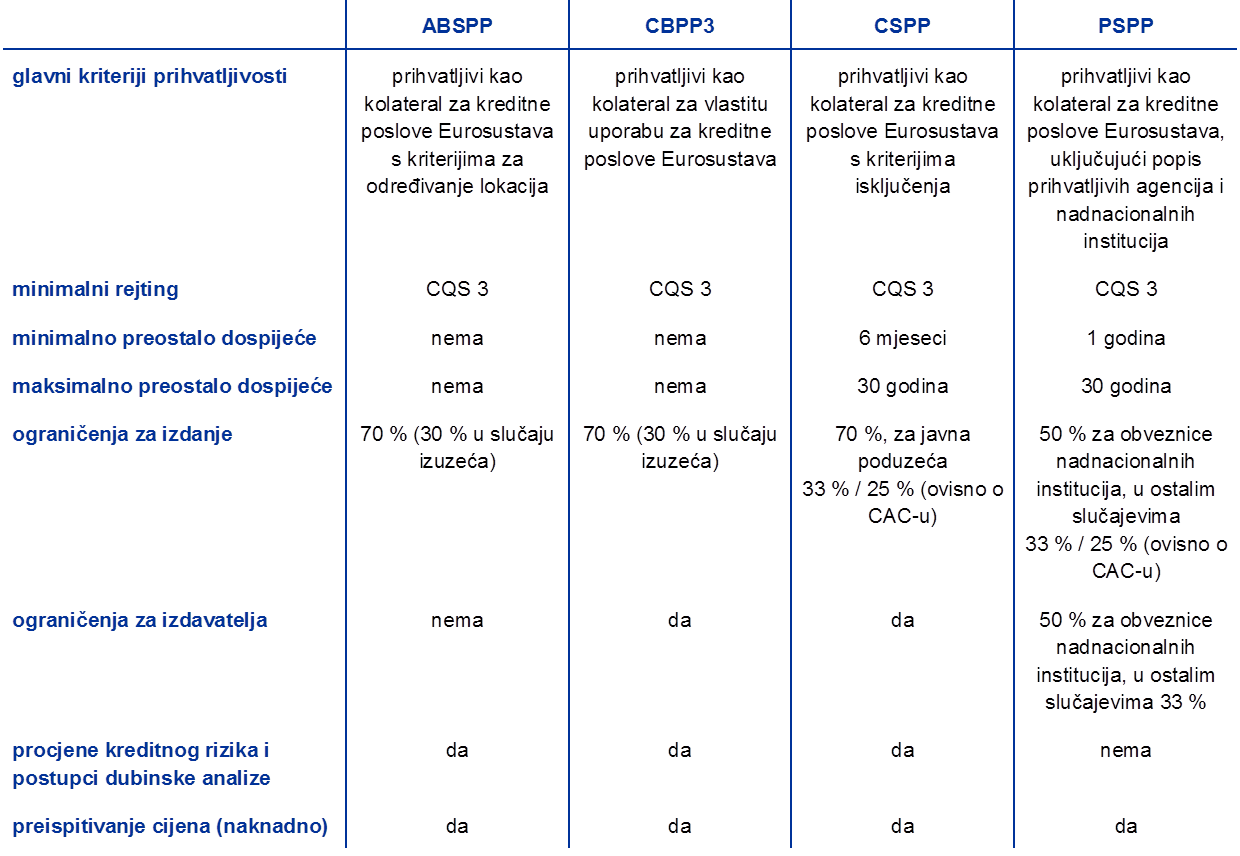 - Informacije o pozajmljivanju vrijednosnih papira u sklopu CBPP3 i ABSPP‑a vidi u „General APP securities lending framework”.