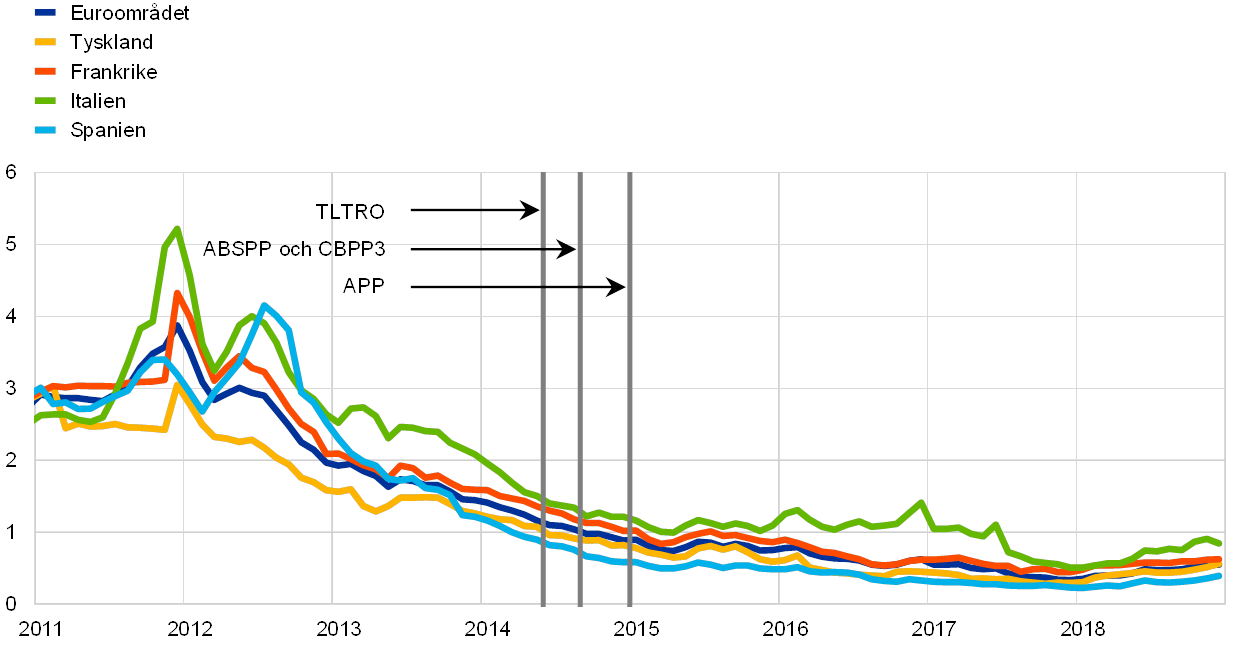 - Denna ruta baseras på artikeln ”The impact of the corporate sector purchase programme on corporate bond markets and the financing of euro area non-financial corporations”, Economic Bulletin, nr 3, ECB, 2018.