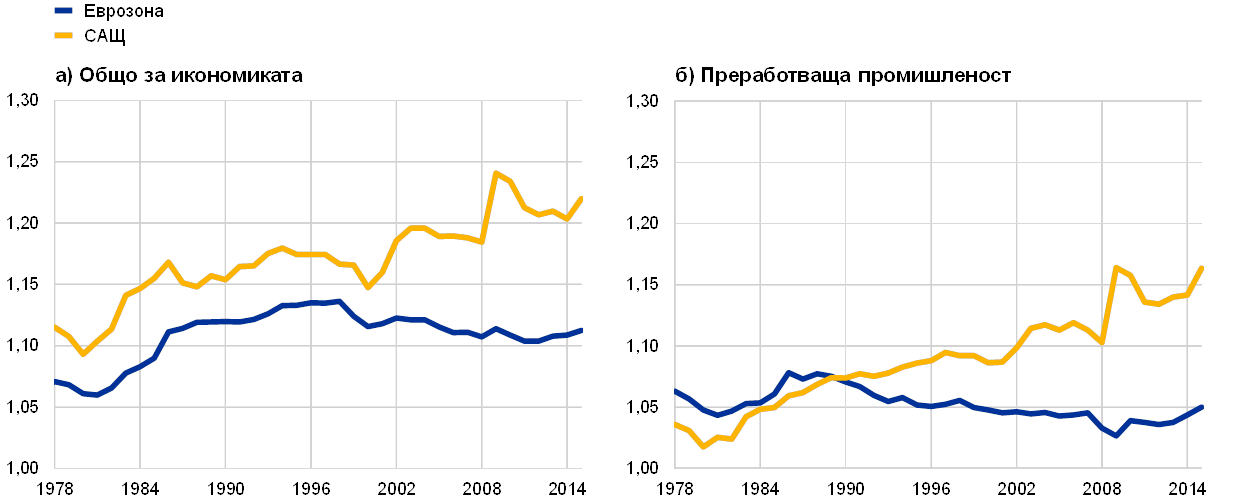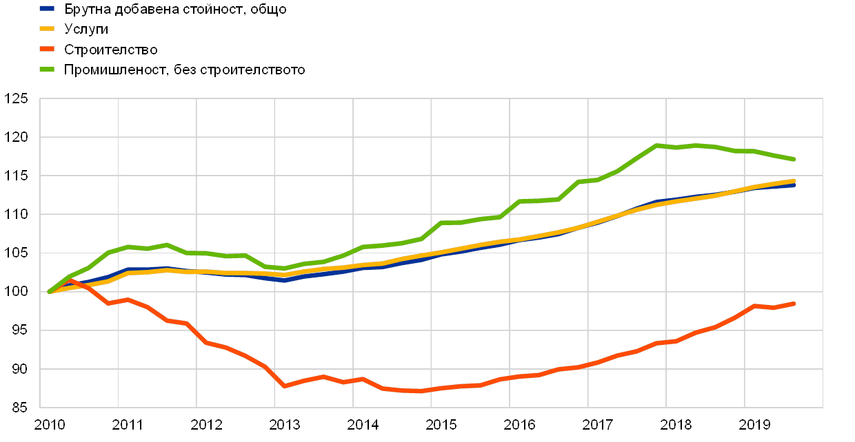 - За обща представа относно взаимодействието между преработващата промишленост и сектора на услугите виж карето Developments in the services sector and its relationship with manufacturing, Economic Bulletin, Issue 7, ECB, 2019.