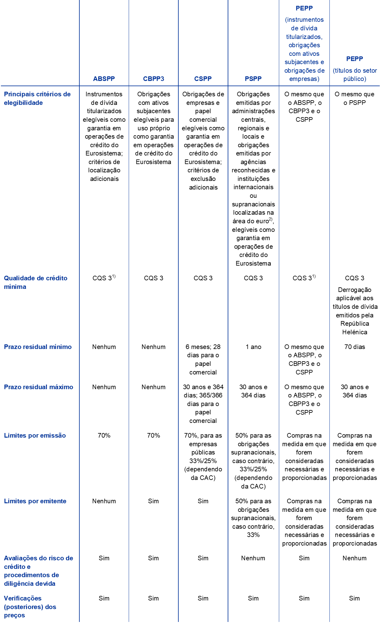- Ver também a secção Asset purchase programmes do sítio do BCE.