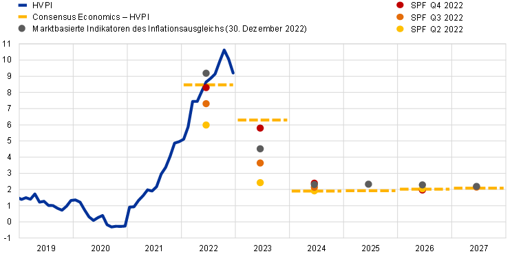 Quellen: Euroraum-Projektionen von Fachleuten des Eurosystems vom Dezember 2022 und EZB-Berechnungen.