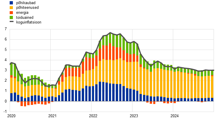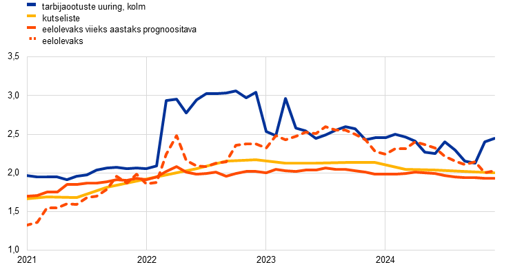 Lisateabe saamiseks vt EKP majandusülevaate 8/2024 infokast „Rahapoliitika ülekandumine kaupade ja teenuste inflatsiooni: üksikasjalik vaade“.