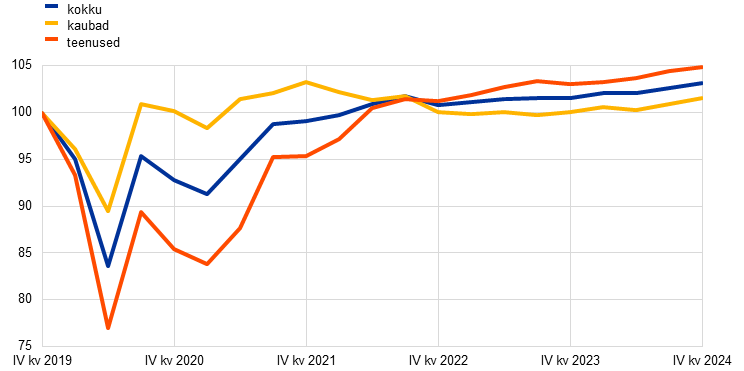 Lisateabe saamiseks euroala tööturu arengu kohta alates pandeemiast vt EKP majandusülevaate 8/2024 täispika ingliskeelse versiooni artikkel „Explaining the resilience of the euro area labour market between 2022 and 2024“.