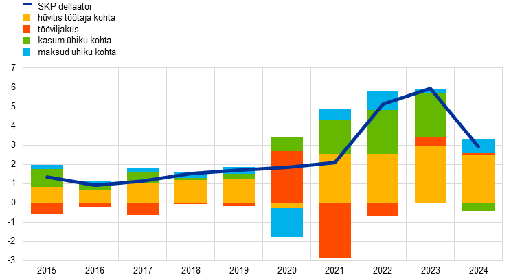 Lisateabe saamiseks kasumi puhvrirolli kohta vt EKP majandusülevaate 4/2024 infokast „Kasuminäitajad inflatsioonianalüüsis, milles võetakse arvesse kogukulude rolli“.