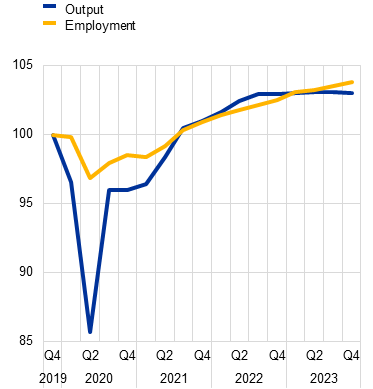 For a thorough overview of the euro area labour market that complements the results presented in this box, see the box entitled “The euro area labour force: recent developments and drivers”, Economic Bulletin, Issue 6, ECB, 2023; Arce, O., Consolo, A., Dias da Silva, A. and Mohr, M., “More jobs but fewer working hours”, ECB Blog, 7 June 2023; and the box entitled “The role of public employment during the COVID-19 crisis”, Economic Bulletin, Issue 6, ECB, 2022.