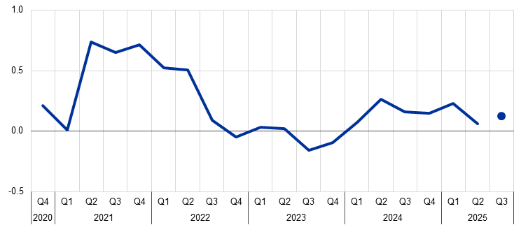 The effect of US tariffs on activity and prices in the euro area was mostly viewed as being negative at present, albeit with little to no impact on final consumer prices. The downward pressure on both activity and prices reflected reduced demand, in part caused by trade diversion from Asia (and China in particular) as exporters from the region sought alternatives to the US market. This was exacerbated by the appreciation of the euro. Consistent with this trend, contacts in the transport and logistics sector pointed to strong growth in imports and a decline in exports. So far, increased import competition mainly affected intermediate goods and in particular more commoditised, upstream products. However, contacts expected this to extend to downstream products with higher value-added content in the coming months and quarters. By contrast, contacts in the retail and consumer services sectors reported minimal, if any, impact on their activity or prices to date, and did not anticipate much impact in the near future.