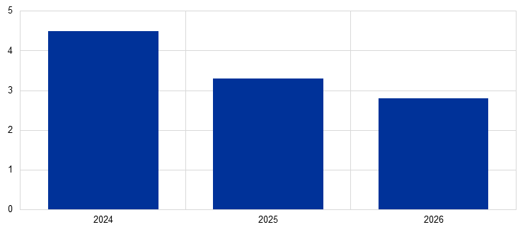 Notes: Averages of contacts’ perceptions of wage growth in their sector in 2024 and their expectations for 2025 and 2026. The averages for 2024, 2025 and 2026 are based on indications provided by 63, 65 and 51 respondents respectively.