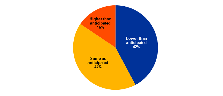 The impact of US tariff increases in 2025 was said by most to have been the same as – or lower than – anticipated. Roughly two-fifths of contacts who considered their firm or sector to be affected by the US tariffs said the impact had been lower than anticipated, less than half that number thought the opposite and roughly the same number said the impact was the same as anticipated (Chart C). Reasons cited for a lower impact included (i) a degree of frontloading and opportunities during 2025 to avoid the US tariffs; (ii) a rapid reorientation of global trade, with the rest of the world becoming more integrated; (iii) significant absorption of the impact by US importers fearful of reactions from the US government; (iv) an offsetting impact from the AI boom; and (v) resilience of US consumer spending driven by higher income households.
