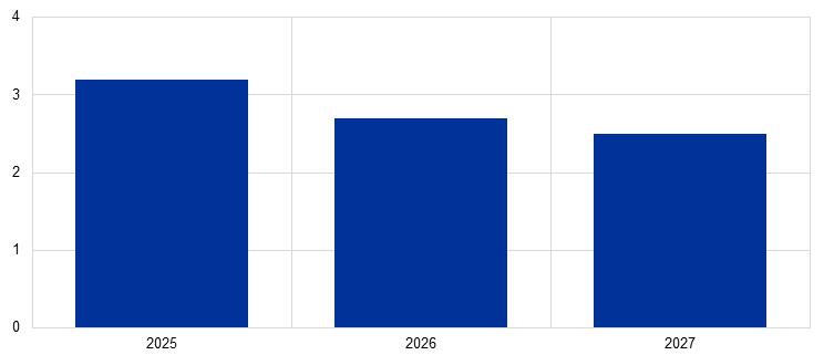 Notes: Averages of contacts’ perceptions of wage growth in their sector in 2025 and their expectations for 2026 and 2027. The averages for 2025, 2026 and 2027 are based on indications provided by 68, 70 and 33 respondents respectively.