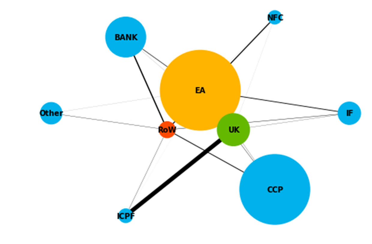 UK-based dealers are important in the euro area credit default swap (CDS) market. UK dealers play a prominent role in providing liquidity in the CDS market to a number of euro area sectors, most notably banks. This is captured by the ratio of net over gross exposures and expressed by the thickness of the edges in panel (a) of Chart B.[19] Meanwhile euro area G16 dealers dominate the euro interest rate swap (IRS) market, with strong directional exposures towards non-financial firms and investment funds. In both markets, UK-based and euro area dealers are highly interconnected.