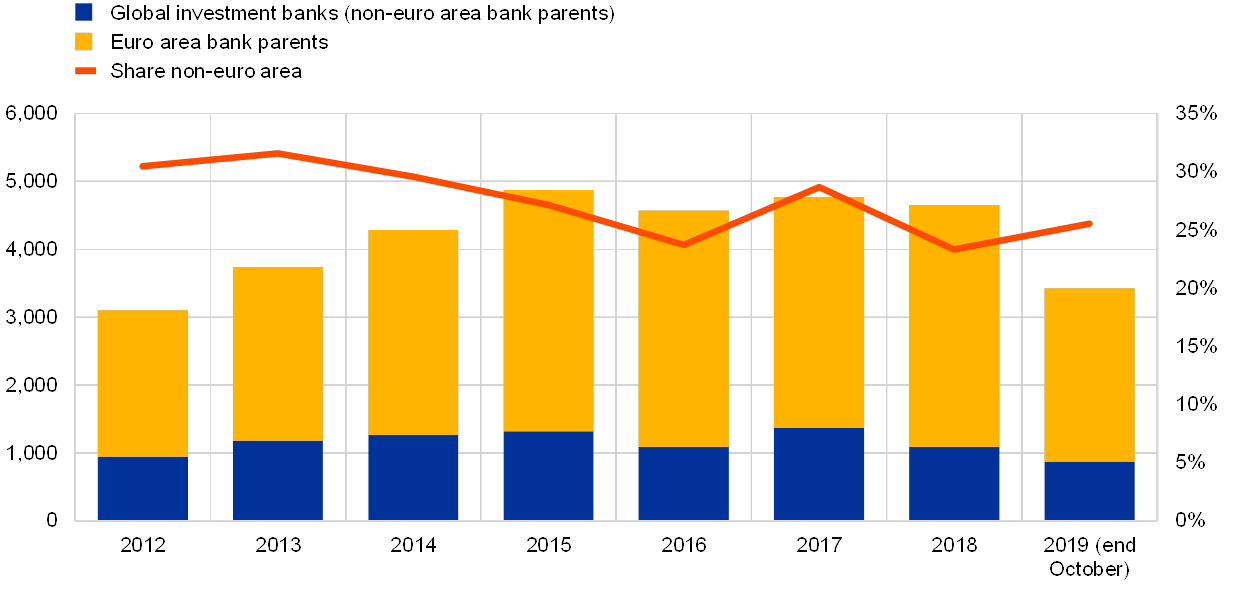 Some UK-based banks are planning to transfer some activities from the UK to continue servicing the euro area (see Box A.2). These are largely global banks that act as intermediaries in capital and derivatives markets (see Box A.3) and provide financial services to euro area non-financial companies and governments. Banks may continue providing these services by establishing or expanding their presence in the euro area. These institutions are expected to be capable of managing all material risks potentially affecting them independently and at the local level. Their governance and risk management mechanisms will need to be commensurate with the nature, scale and complexity of the business, including adequate staffing of their euro area entities.