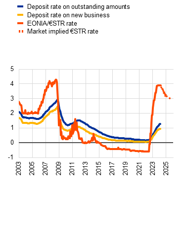 It should be noted that this does not separate the rate effect from the composition effect for shifts from overnight deposits to term deposits. Calculations based on ECB (MIR, BSI) data suggest that for NFC deposits, this effect accounts for about 15% of the increase in funding costs.