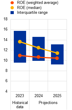 The Financial Stability Review uses the four-quarter average of stock variables, while flow variables are annualised using trailing four-quarter sums. In addition, a balanced sample of currently 80 banks is used to avoid composition effects, which might result in figures that differ from those published in the Supervisory Banking Statistics.