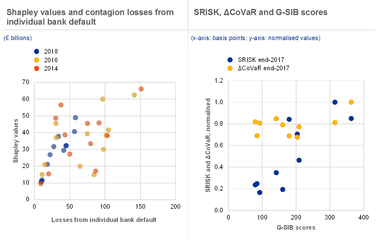 The increased availability of granular data on bilateral and common exposures of financial institutions opens up new ways to measure the systemic footprint. As discussed in the May 2019 FSR, data on large exposures and securities holdings of euro area banks provide a new perspective on contagion risks within the banking sector, and links to and from the real economy.[7] These loan-level data on exposures can provide new information on: (i) the impact of a bank’s failure on the real economy; and (ii) the impact of a bank’s failure on the rest of the financial system.