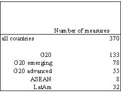 | Table 3: Protectionist measures by implementing country November 2008 - December 2009 |