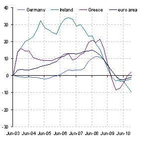 | Note: Last observation refers to 2010Q4. Quarterly; year-on-year % change; not adjusted for securitisation.Source: European Central Bank. |