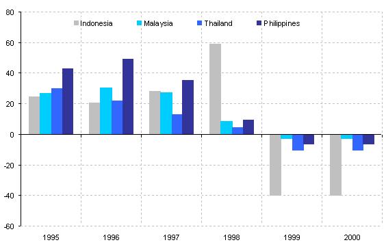 | Note: in percentage.Source: Average values by estimates of Chinn (1998), Goldstein (1998), Tornell (1998) and Berg and Pattillo (1998). |