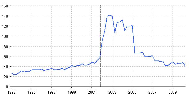 | Share of foreign currency denominated debt in 2001: 97.59% Source: Haver Analytics. |