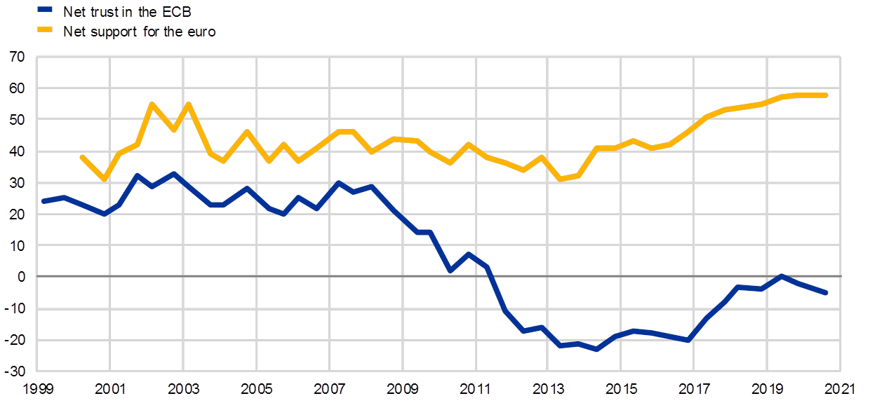 Das Vertrauen der Öffentlichkeit in Zentralbanken ist eine wesentliche Grundlage für eine erfolgreiche Geldpolitik. Im Fall der EZB ist die Unterstützung für den Euro zudem ein wichtiger Maßstab für die Akzeptanz der einheitlichen Geldpolitik in der europäischen Wirtschafts- und Währungsunion.