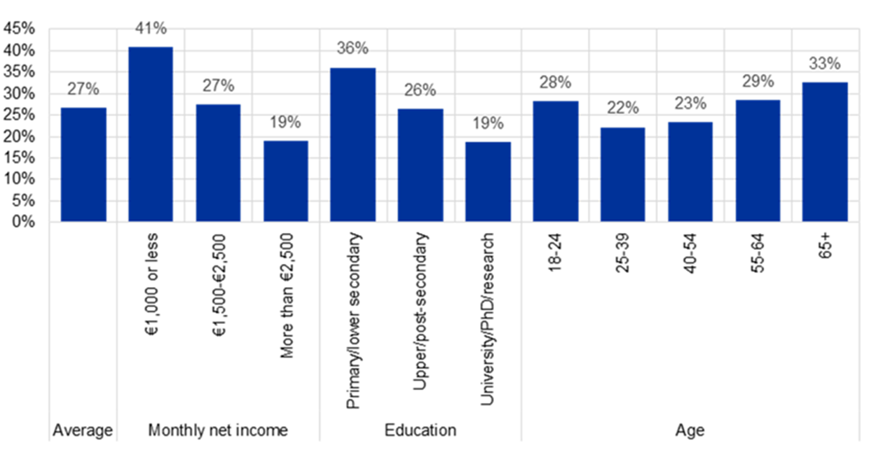 Notes: The question included the following answer options: “Cash”, “Cards”, “Don’t know” and “I don’t have a clear preference between cash and cards”. Net income is not adjusted for the cost of living. For respondents in the Netherlands, net income was estimated from annual gross income.