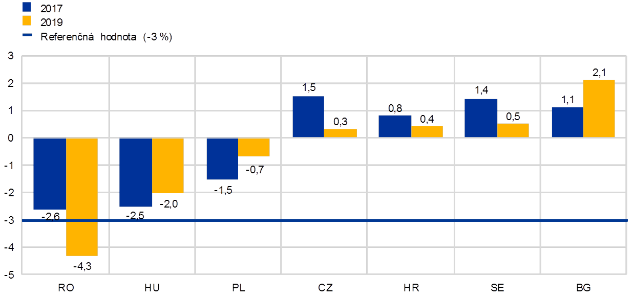 Z hľadiska udržateľnosti verejných financií sa výsledok v hodnotenom roku 2019 porovnáva s výsledkami hodnotenej krajiny za uplynulých desať rokov. Najprv sa hodnotí vývoj pomeru deficitu. Treba pamätať aj na to, že zmena ročného pomeru deficitu krajiny je obyčajne ovplyvňovaná rôznymi faktormi. Tieto vplyvy sa dajú rozdeliť na cyklické, ktoré odzrkadľujú reakciu deficitov na zmeny v hospodárskom cykle, a necyklické, ktoré sa často považujú za výsledok štrukturálnych alebo trvalých zmien rozpočtovej politiky. Tieto necyklické vplyvy, ktoré sú kvantifikované v tejto správe, však nemožno vždy v plnej miere považovať za výraz štrukturálnych zmien fiškálnych pozícií, pretože zahŕňajú aj účinok opatrení a osobitných faktorov, ktoré majú na rozpočtové saldo iba dočasný vplyv. Zistiť rozsah zmien štrukturálnych rozpočtových pozícií počas pandémie COVID-19 je obzvlášť náročné vzhľadom na neistotu v otázke úrovne a tempa rastu potenciálnej hospodárskej produkcie.
