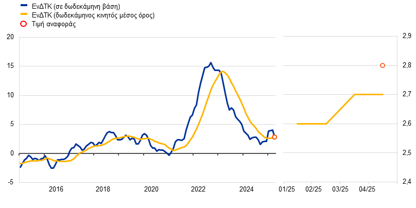 Πληθωρισμός βάσει του ΕνΔΤΚ και τιμή αναφοράς
