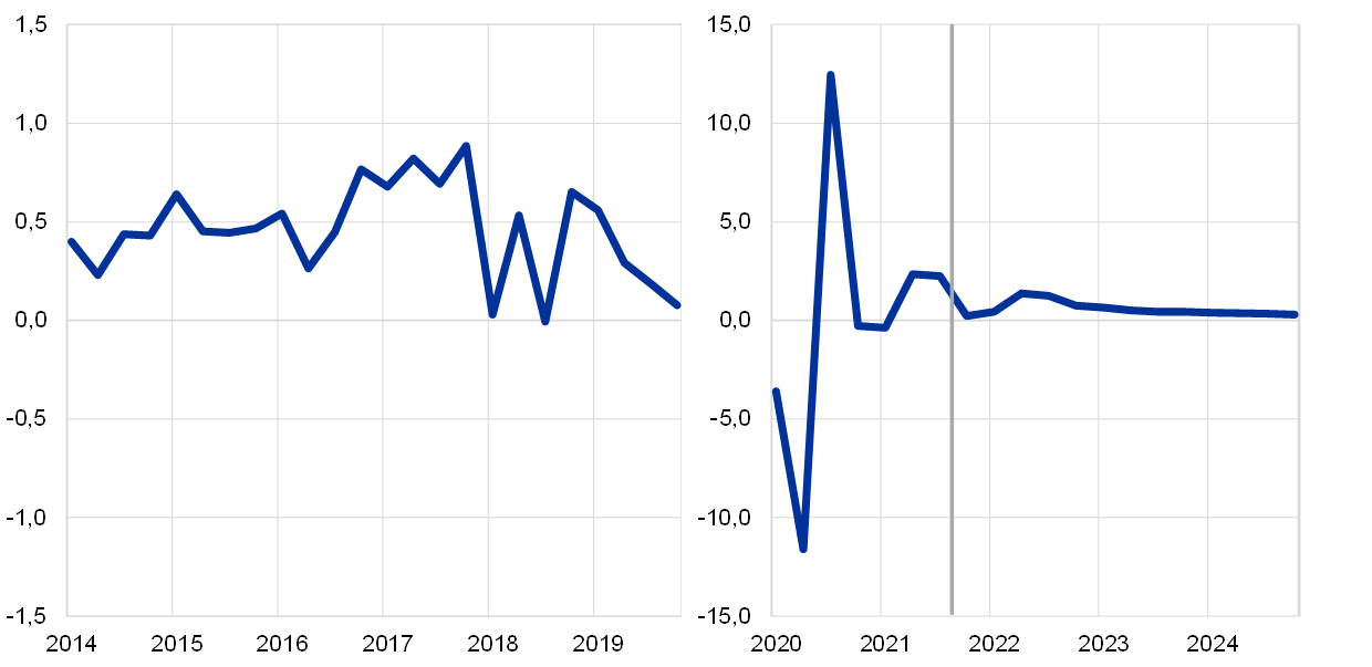 4. Se også boks 2 med titlen "Udviklingen i husholdningernes opsparingskvote og konsekvenserne for de økonomiske udsigter for euroområdet", Makroøkonomiske fremskrivninger for euroområdet udarbejdet af Eurosystemets stab, juni 2021.