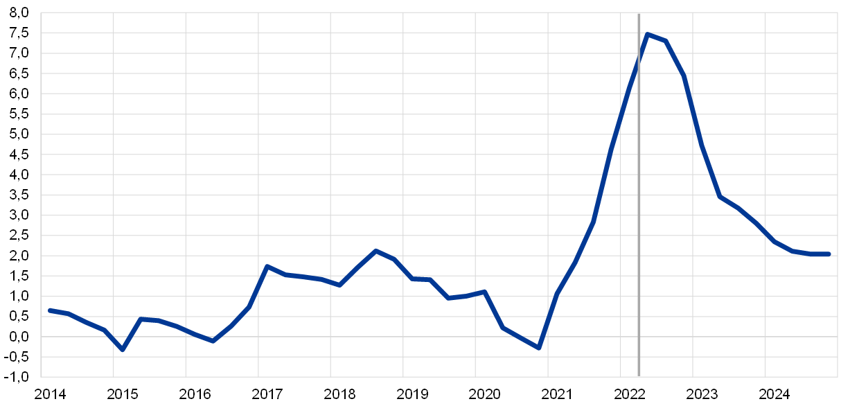 Gwałtowny wzrost inflacji doprowadził do zwiększenia się ryzyka wystąpienia efektów drugiej rundy oddziałujących na inflację poprzez wzrost żądań płacowych. Niedawny gwałtowny wzrost inflacji do poziomu, który jest najwyższy w dotychczasowej historii strefy euro, może mieć duży wpływ na perspektywy kształtowania się płac, a to jest pierwszym etapem potencjalnej pętli oddziaływania drugiej rundy na ceny. W tej ramce oceniono makroekonomiczne konsekwencje ewentualnej zmiany relacji płacowo-cenowych wskutek wysokiej inflacji[11].