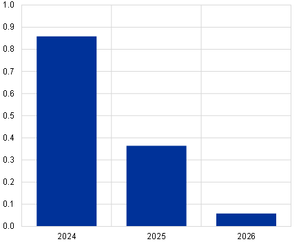 Over the medium term, GDP growth is projected to stabilise at rates broadly in line with the pre-pandemic average, supported by increasing real incomes and strengthening foreign demand. Real GDP growth is expected to strengthen in 2024-2025 and to stabilise in 2026 (Table 2). While recent tailwinds are waning, growth is projected to be driven by abating inflationary pressures, helped by the unwinding of the energy shock, as well as by robust income growth. These factors, in the context of resilient labour markets, provide for a strong recovery in private consumption. Nevertheless, the withdrawal of energy and inflation compensatory fiscal support measures introduced since 2022 will have a small negative impact on growth in 2024-26.