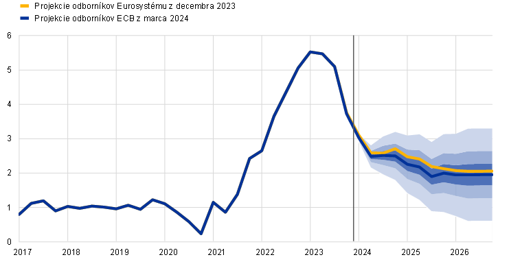 Projekcie odborníkov ECB | Marec 2024 | 0,6 | 1,5 | 1,6 | 2,3 | 2,0 | 1,9 |