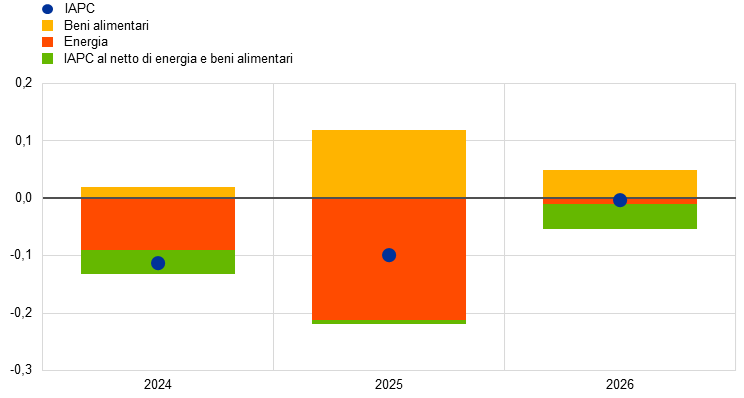 Si stima che il venir meno delle misure di bilancio volte a compensare l’aumento dei prezzi dell’energia e dell’inflazione da dicembre 2023 eserciti un impatto verso l’alto sull’inflazione complessiva pari a 0,4 e 0,1 punti percentuali, rispettivamente, nel 2024 e nel 2025.
