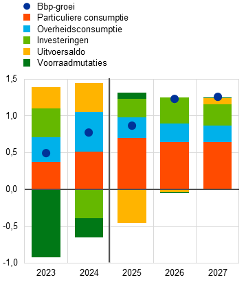Binnenlandse vraag | 0,7 | 1,2 | 1,3 | 1,2 | 0,1 | 0,0 | -0,1 | 0,0 |