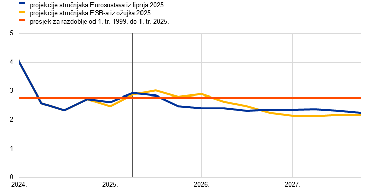projekcije stručnjaka Eurosustava | lipanj 2025. | 0,9 | 1,1 | 1,3 | 2,0 | 1,6 | 2,0 | 2,4 | 1,9 | 1,9 | |||