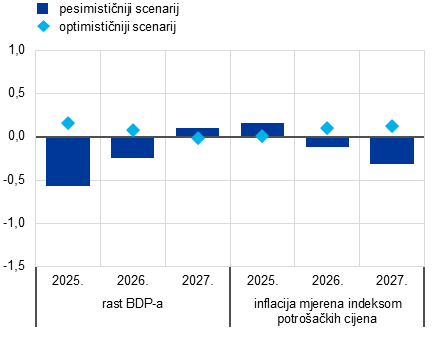 (odstupanja od stopa rasta iz osnovnog scenarija, u postotnim bodovima) | ||||||