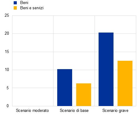 4. A differenza dello scenario di base e di quello moderato, lo scenario grave non include esenzioni tariffarie temporanee. Ciò implica l’ipotesi che ai beni oggetto di esenzioni temporanee siano applicati i dazi generali annunciati dagli Stati Uniti il 2 aprile.
