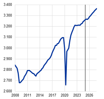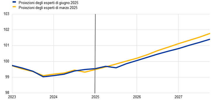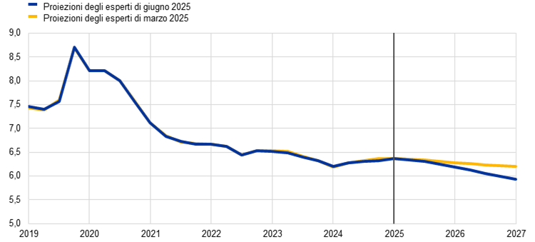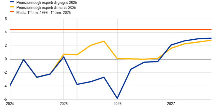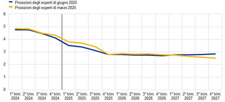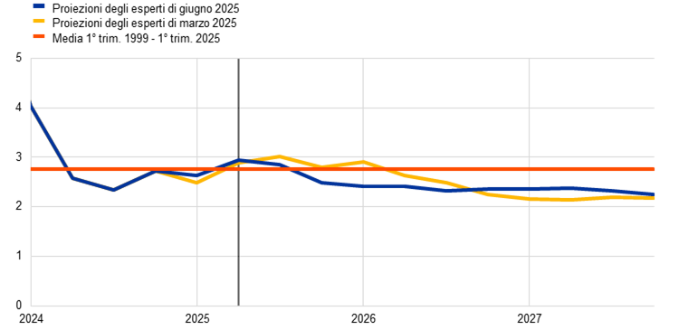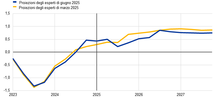 1. Le ipotesi tecniche e le proiezioni per l’economia mondiale sono aggiornate al 14 maggio 2025. Le proiezioni macroeconomiche per l’area dell’euro sono state ultimate il 21 maggio 2025.