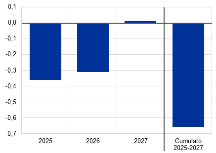 11. Secondo le stime, le sovvenzioni dell’NGEU (che non hanno un impatto macroeconomico sul bilancio dal lato delle entrate) sarebbero prossime allo 0,5% del PIL per il 2026 e solo lievemente superiori allo zero per il 2027.