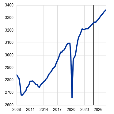 Sk. arī ECB 2024. gada "Tautsaimniecības Biļetena" Nr. 7 rakstu The performance of Eurosystem/ECB staff projections for economic growth since the COVID-19 pandemic ("Eurosistēmas/ECB speciālistu izaugsmes iespēju aplēšu sniegums kopš Covid-19 pandēmijas") .