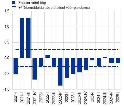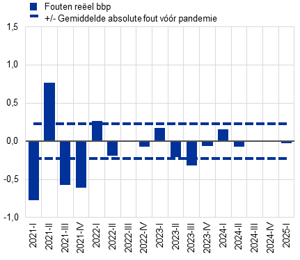 Zie ook The performance of Eurosystem/ECB staff projections for economic growth since the COVID-19 pandemic, Economic Bulletin, Nummer 7, ECB, 2024.