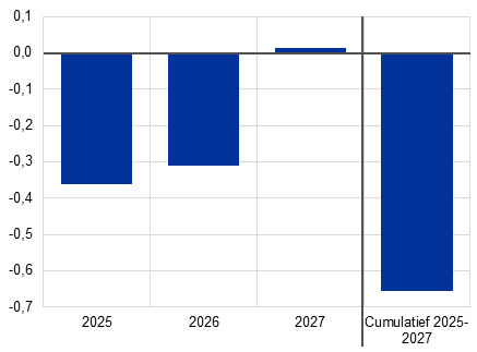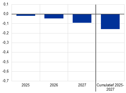 De NGEU-subsidies (zonder macro-impact aan de inkomstenzijde van de begroting) worden geraamd op bijna 0,5% van het bbp voor 2026 en slechts iets boven nul voor 2027.