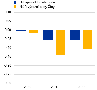 Makroekonomické důsledky silnějšího odklonu obchodu a nižších čínských vývozních cen pro eurozónu