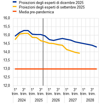 Proiezioni macroeconomiche per l’area dell’euro formulate dagli esperti dell’Eurosistema, dicembre 2025